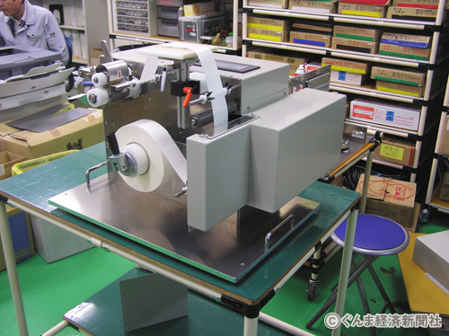 省力化機械の設計・製作、微細加工を手掛けるヤゲタ精器(太田市東新町、八下田俊明社長)が開発した両面テープ自動定寸切断送り装置「カットフィーダーYNF−100型」が好評だ。一台の装置で20ミリ〜100ミリのテープ幅に対応でき、