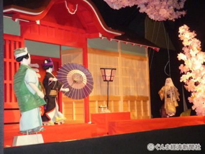 なぜ桐生にからくり人形芝居の生き人形が残っていたかは、明治27年に、桐生天満宮御開帳の付け祭りに、浅草から8代目竹田縫之助が来て、町内でからくり人形芝居をしたのが最初で、都合6回開催されましたが、その貴重な人形が昭和63年旧家の蔵から出品され「ふるさとの祭り展」で大反響を呼んだのであります。
